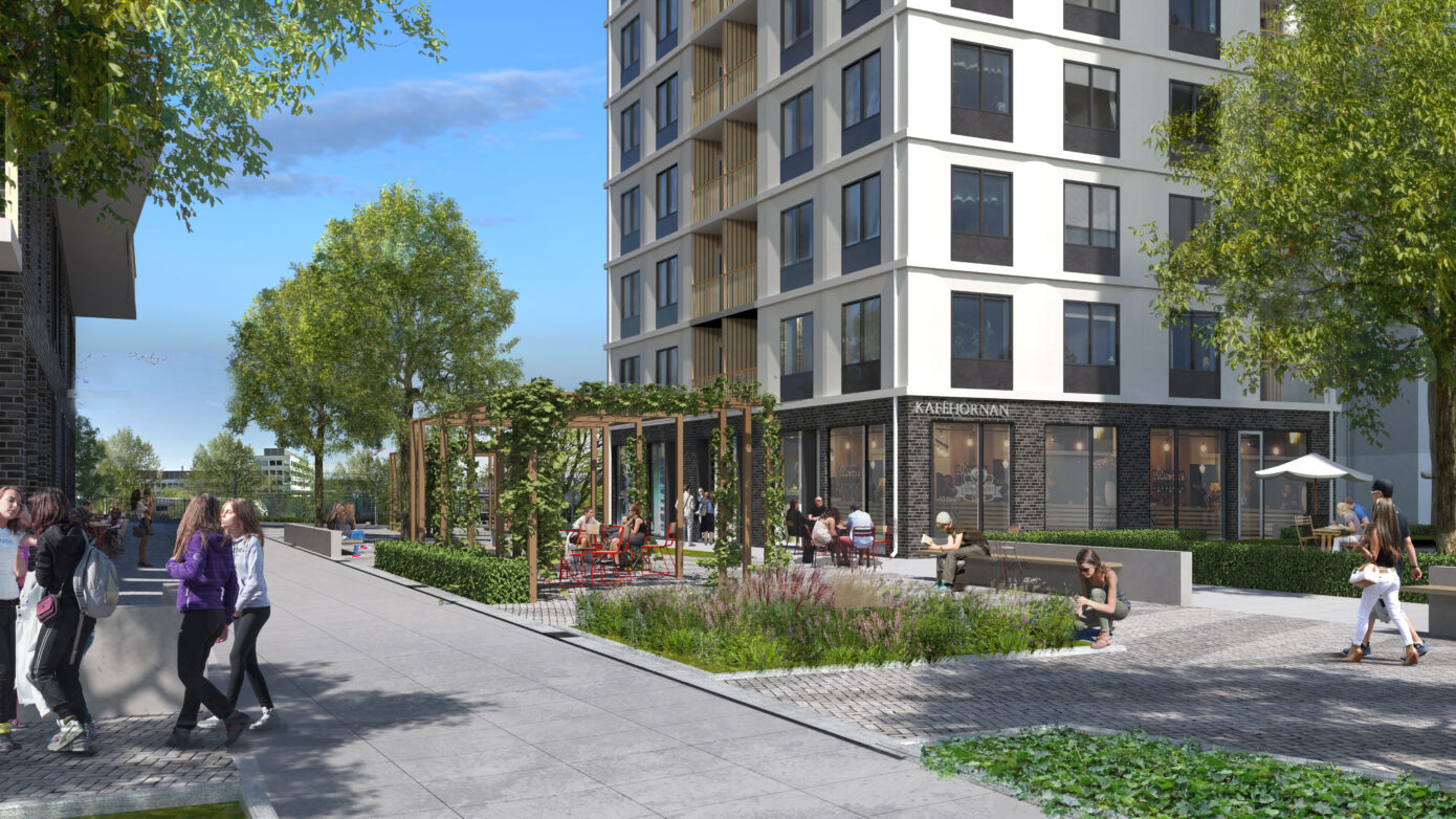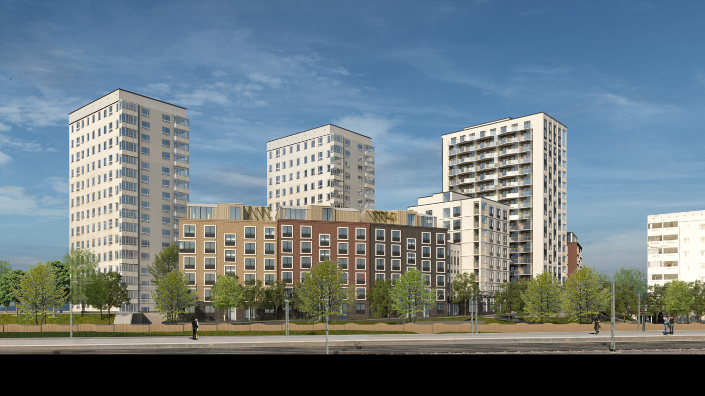 Projektet omfattar fyra nya bostadshus i 7–17 våningar med sammanlagt 249 hyreslägenheter, lokaler i bottenvåningarna samt garage i källarplan.